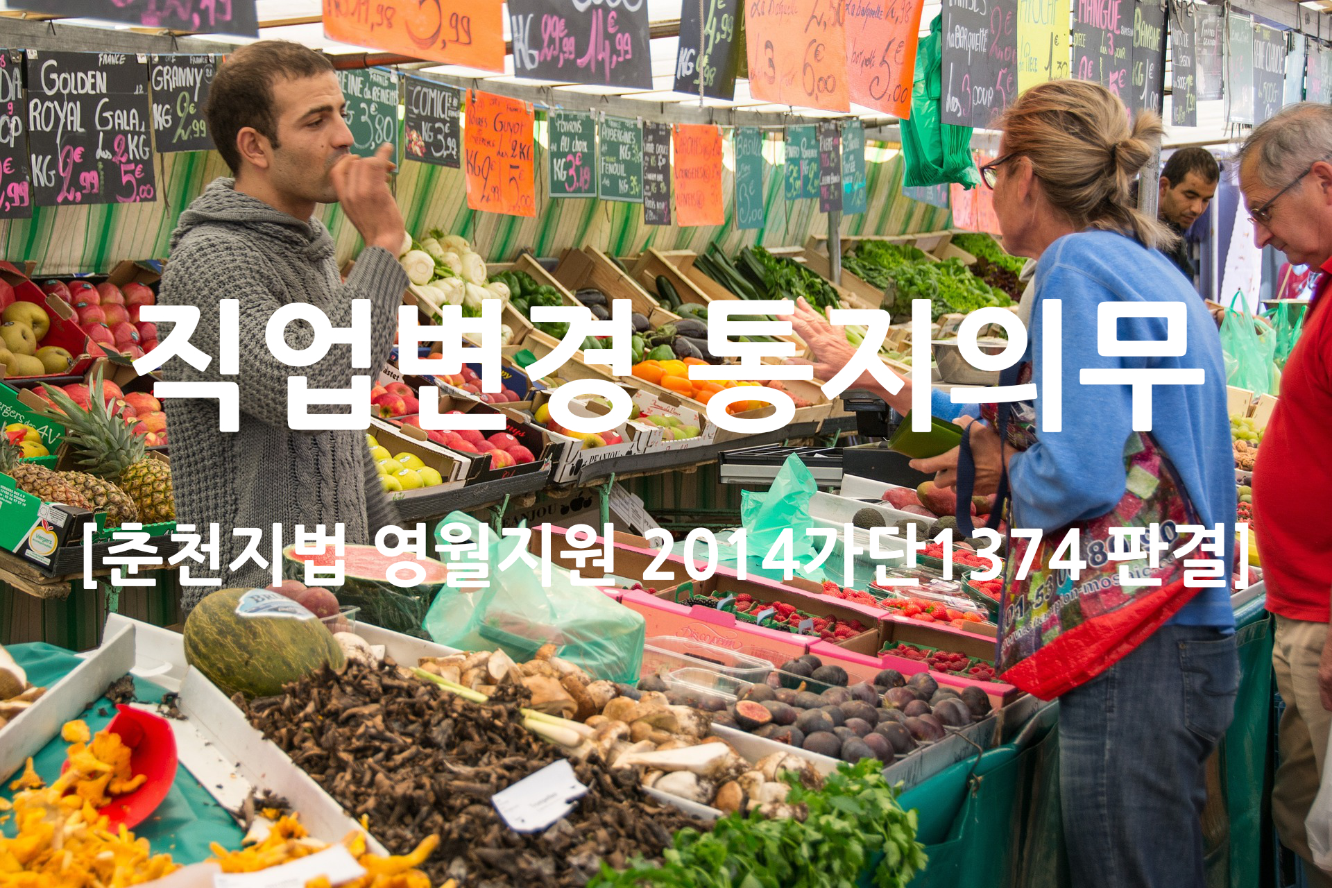 <사안 소개> 피보험자가 보험가입 시 직업을 '농산물 판매'(2급)으로 고지하였지만, 보험회사는 '농축산물 관련 관리 및 경영자'(1급)으로 판단하고 인수하였는데, 피보험자는 보험개시 이후 직업을 '조림업 현장관리직'(2급)으로 변경하면서 보험회사에 통지하지 않았고, 작업 중 사고를 당하여 보험금을 청구하였습니다.1